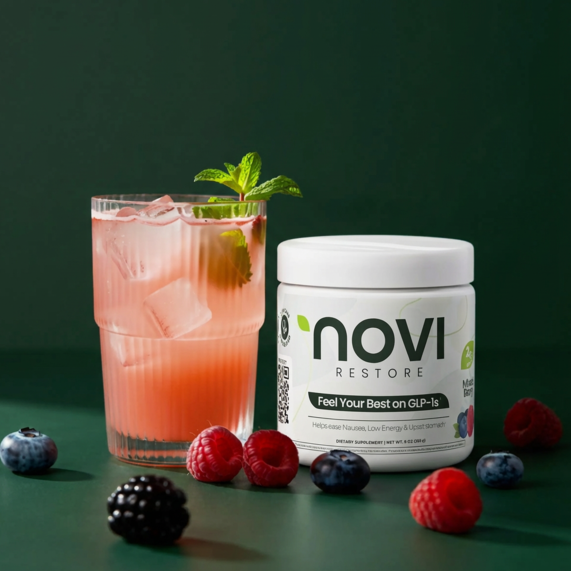 Pharmacist-formulated with electrolytes, probiotics, B-vitamins, and superfoods designed for GLP-1 users.